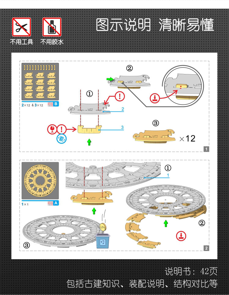 - [Mortise and Tenon Joints] This 3D puzzle adopts the amazing mortise-and-tenon joinery, which is the main joint method of wood components of ancient Chinese architecture. All pieces in this DIY wooden craft model kit are made to interlock with perfect fit, without using fasteners or glues. The mortise-and-tenon joint is both simple and sturdy, which makes the classical building have strong earthquake resistance