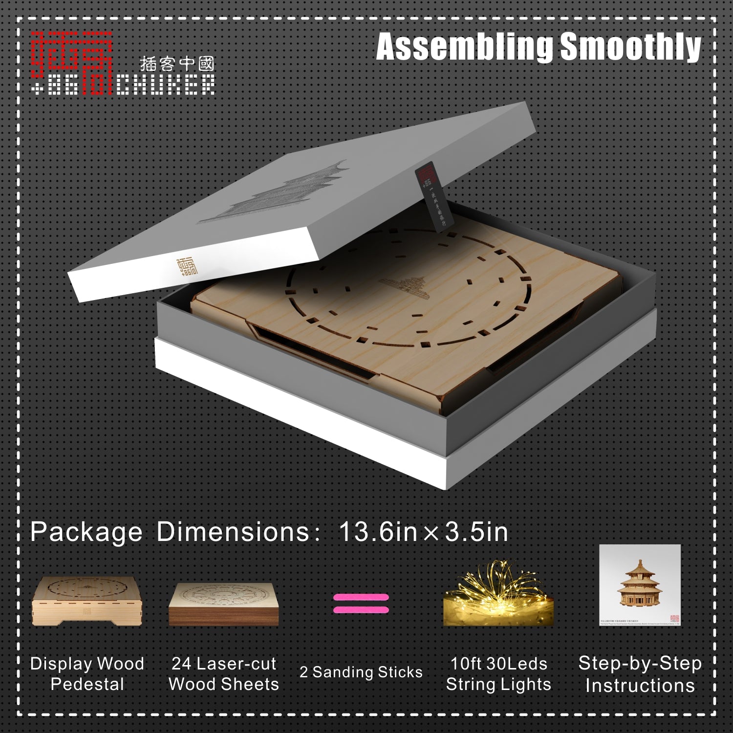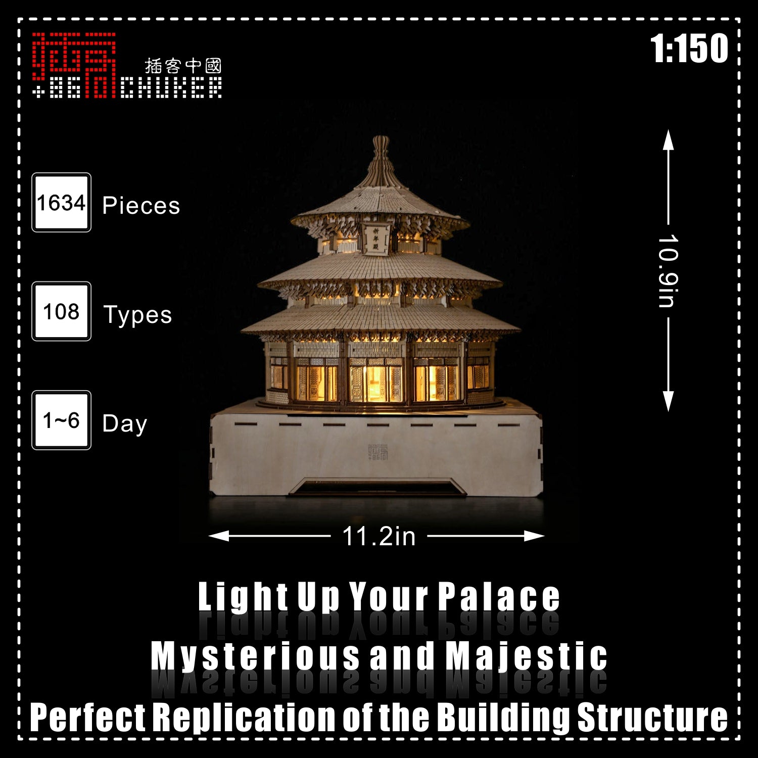 CHUKER Big Architecture Model Kit for Adults, Highly Skillful 3D Wooden Puzzle DIY Gift with Lights, Temple of Heaven (1634 Pieces)